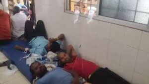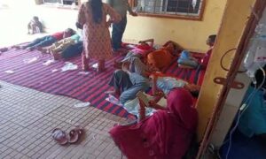 मरीजों की संख्या अधिक होने के कारण मरीजों को जमीन पर लिटाकर ही इलाज प्रारम्भ किया गया।