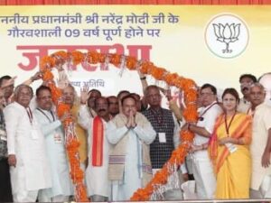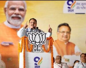 श्री नड्डा ने कहा कि प्रधानमंत्री गरीब कल्याण योजना में जनता को मुफ्त चावल दिया। भारत की गरीबी 22 फीसदी से घटकर 10 फीसदी से भी कम रह गई है। प्रधानमंत्री आवास योजना में 12 करोड मकान बनाए। 1993 में 1 पंचायत में साल में इंदिरा आवास योजना में एक मकान बनता था। हमारी माताएं बहनें नित्यकर्म के लिए बाहर जाया करती थी। 12 करोड़ बहनों को सम्मान दिया। छत्तीसगढ़ में भी यही स्थिति थी। छत्तीसगढ़ में 35 लाख महिलाओं को सम्मान दिया। गंभीर बीमारियों के इलाज के लिए प्रधानमंत्री नरेंद्र मोदी ने गरीबों को 5 लाख तक के इलाज की आयुष्मान योजना देश को दी। साढ़े 36 लाख परिवार छत्तीसगढ़ के हैं जिन्हें आयुष्मान योजना का लाभ मिलता है। यह सब कम आय वर्ग वाले, रोज कमाने खाने वाले गरीब लोग हैं जिन्हें मोदी जी ने बेहतर उपचार उपलब्ध कराया है। महिलाएं तीन किलोमीटर पानी लेने के लिए जाया करती थीं। मोदी जी ने घर घर में पानी पहुंचा दिया है। किसानों को सम्मान निधि दी जा रही है। 11 करोड़ से अधिक किसानों के खाते में सम्मान निधि पहुंच जाती है। कोई भी बिचोलिया नहीं। सीधे किसान के खाते में पैसा जाता है।