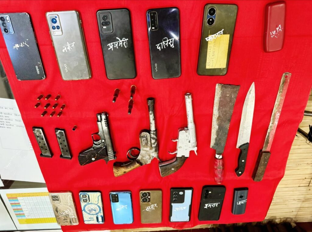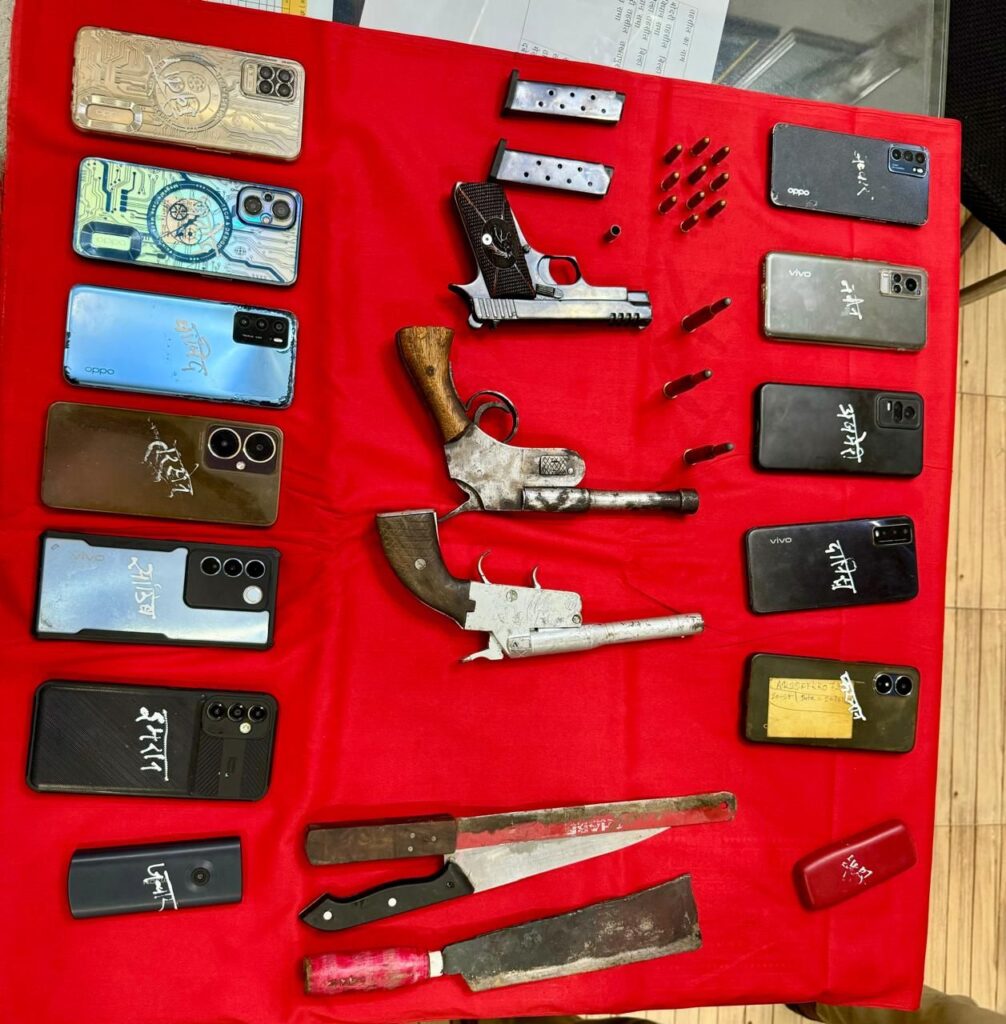पुलिस को देखते ही कट्टा, पिस्टल निकाल कर गाड़ियों से भागने की कोशिश की, जान जोखिम में डालकर पुलिस ने 10 आरोपियों को पकड़ा।