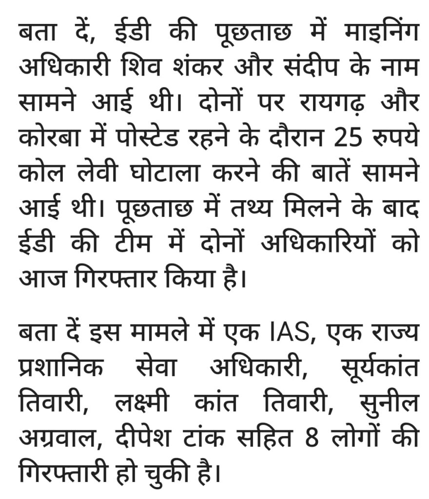ब्रेकिंग: छत्तीसगढ़ में ED ने माइनिंग अधिकारियों को किया गिरफ्तार,मनी लॉन्ड्रिंग मामले में एक और बड़ी कार्यवाही ……अब तक IASसहित8लोगों की हो चुकी है गिरफ्तारी