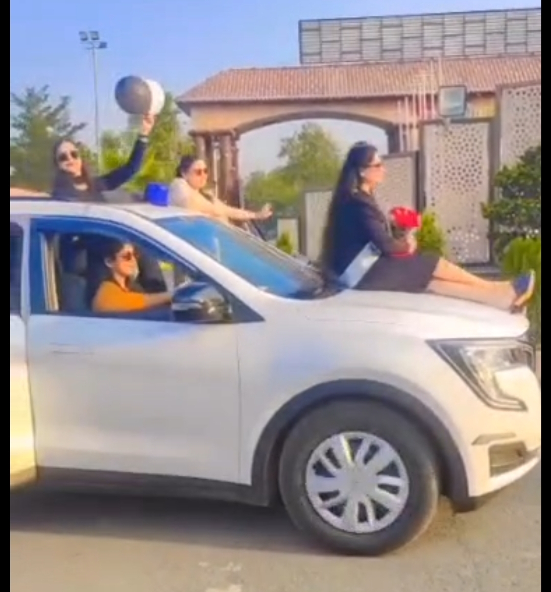 वीडियो में साफ दिख रहा है कि फरहीन ने पहले कार के बोनट पर बैठकर केक काटा, और उसके बाद उसी बोनट पर बैठकर वीडियो (रील) भी बनवाया। इस दौरान कार कोई और चला रहा था, जबकि कई अन्य लोग कार के दोनों गेट खोलकर खड़े हुए थे। कुछ लोग कार में पीछे भी बैठे थे।