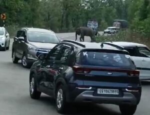 कोरबा : कोरबा जिले के कटघोरा वन मंडल अंतर्गत कोरबी चोटिया सर्किल क्षेत्र के ग्राम कांपानवापारा के पास स्थित एनएच-130 अम्बिकापुर-कटघोरा सड़क मुख्य मार्ग में शुक्रवार 7 जून के शाम करीब 4:30 बजे एक दतैल हाथी ने घंटों दशहत मचाया। वाहन चालकों एवं यात्रियों में अफरा-तफरी मची रही। एक मोटरसाइकिल को हाथी ने कुचल डाला। वाहन चालक एवं परिचालकों ने वाहन के ऊपर चढ़ कर अपनी जान को बचाया एवं एक मोटरसाइकिल चालक बाल-बाल बचा।