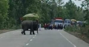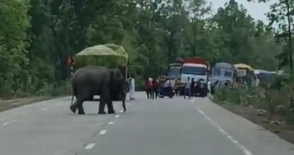 कटघोरा अंबिकापुर एन एच में आवागमन करने वाले सावधान दंतैल हाथी कर रहा है एन एच 130 पर विचरण, एक मोटरसाइकिल को कुचला