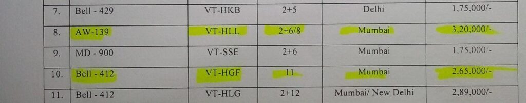 जानकारी के मुताबिक BELL-412 HILL हेलीकॉप्टर का किराया 3 लाख रुपए प्रति घंटा (अब शासन द्वारा 3 लाख 25 हजार स्वीकृत ) है,दोनों ही हेलीकॉप्टर में सिर्फ Call Sign अर्थात रजिस्ट्रेशन का फर्क है। ऐसे में दोनों हेलीकॉप्टर का भुगतान निर्धारित दर से अधिकतम 24 हजार रुपए प्रति घंटा क्योँ किया जा रहा है ? इसका जवाब भी देने में विभाग के अधिकारी कन्नी काट रहे है।
