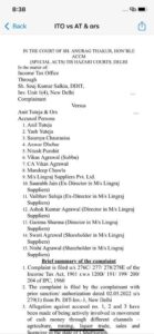 इसे लेकर आईटी विभाग ने दिल्ली स्थित तीस हजारी कोर्ट में प्रकरण दर्ज कराया था | बताया जाता है कि, जिन लोगो के खिलाफ आईटी ने मामला दर्ज किया है, उनके ठिकानो में पहले दौर में वर्ष 2019 में छापेमारी हुई थी | सूत्रों द्वारा यह भी बताया जा रहा है कि इन लोगो के अलावा शेष ठिकानो से संबंधित प्रकरण अभी जांच प्रक्रिया में है |