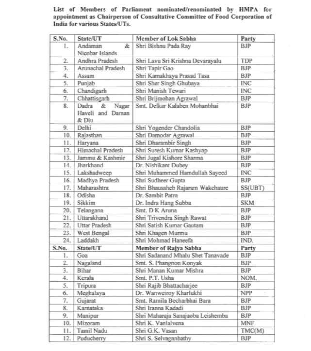केंद्र सरकार ने रायपुर सांसद बृजमोहन अग्रवाल को भारतीय खाद्य निगम की छत्तीसगढ़ राज्य परामर्शदात्री समिति का अध्यक्ष नियुक्त किया, खाद्य वितरण नीति में निभाएंगे अहम भूमिका।