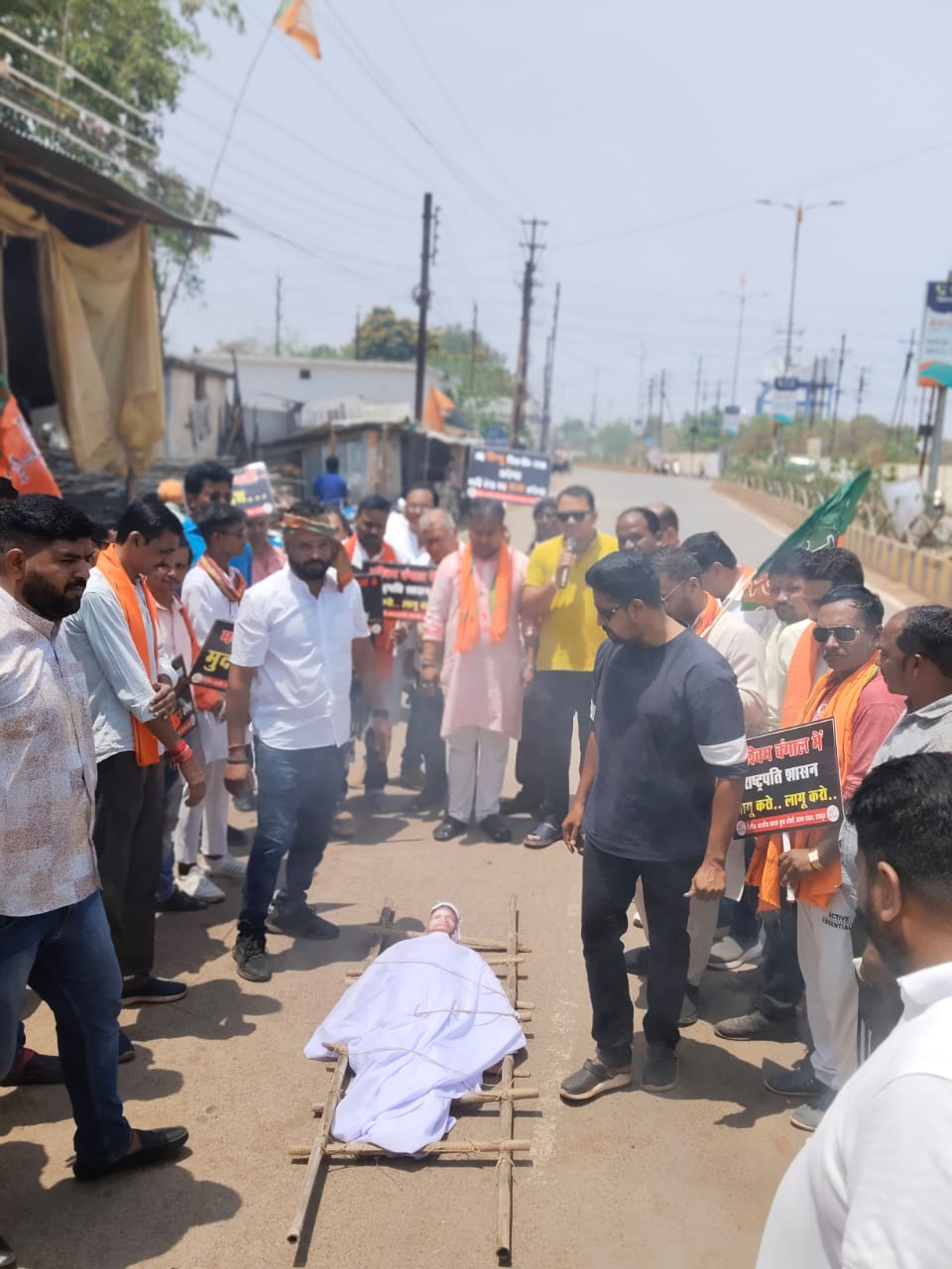Raipur/ माना नगर पंचायत रायपुर में मुर्शिदाबाद हिंसा और हिंदुओं पलायन को विरोध में पश्चिम बंगाल की निकम्मी सरकार को हटा कर राष्ट्रपति शासन लाना के लिए टीएमसी की सीएम ममता बनर्जी का शव यात्रा और पुतला दहन किया गया और माना नगर पंचायत के Ti भावेश गौतम को ज्ञापन कलेक्टर के नाम का सोपा गया जिसमें मुख्य रूप से भाजपा जिला उपाध्यक्ष श्यामा प्रसाद चक्रवर्ती माना नगर पंचायत अध्यक्ष संजय यादव वार्ड 49 की पार्षद डॉक्टर अनामिका सिंह भाजयुमो रायपुर जिलाअध्यक्ष गोविंदा गुप्ता भाजपा माना मंडल अध्यक्ष भीमवंत निषाद भाजयुमो मानामंडल अध्यक्ष नरेश पिल्ले एवं भाजयुमो महामंत्री सोनू रेलवानी और संजय नागर एवं समस्त भाजपा पदाधिकारी उपस्थित थे