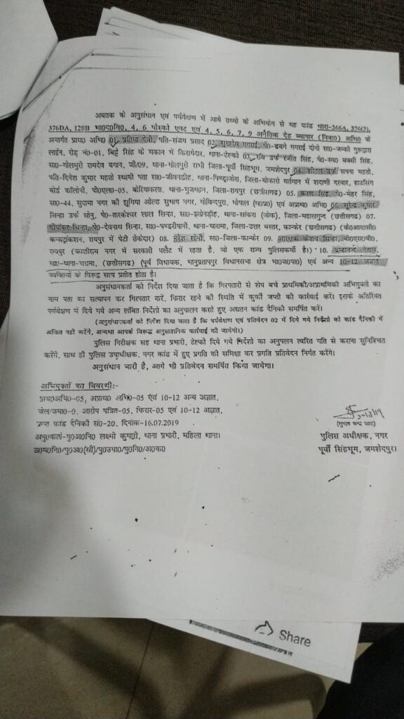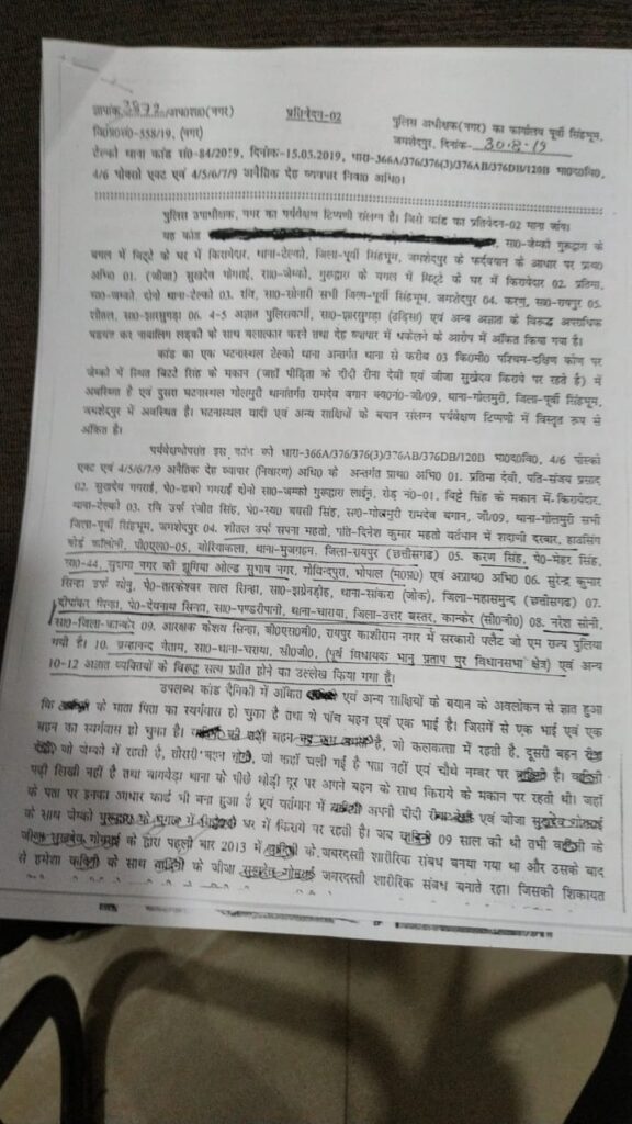 इस मामले में उनके जमशेदपुर जाने या नहीं जाने से कुछ नहीं होता। ब्रम्हानंद नेताम ने पीड़िता के साथ जो दुराचार किया था वह रायपुर में किया था। नगर पुलिस अधीक्षक पूर्वी सिंह भूमि जमशेदपुर के प्रतिवेदन दिनांक 30.08.19 के अनुसार पीड़िता को रवी (जो जेम्को में सोनारी कंपनी के क्वार्टर का निवासी था) तथा प्रतिमा जेम्को निवासी लेकर रायपुर आये, यहां पर करण नाम के व्यक्ति ने उसको अपने फ्लैट पर लेकर गया इसी फ्लैट में उसके साथ आठ लोगों ने बारी-बारी से संबंध बनाया। इन्हीं आठ लोगों में ब्रम्हानंद नेताम, दीपांकर सिन्हा भी थे।