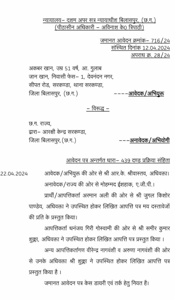 - कांग्रेस नेता जमीन माफिया डॉन अकबर ख़ान की जमानत जिला न्यायालय ने किया खारिज …………देखे आदेश