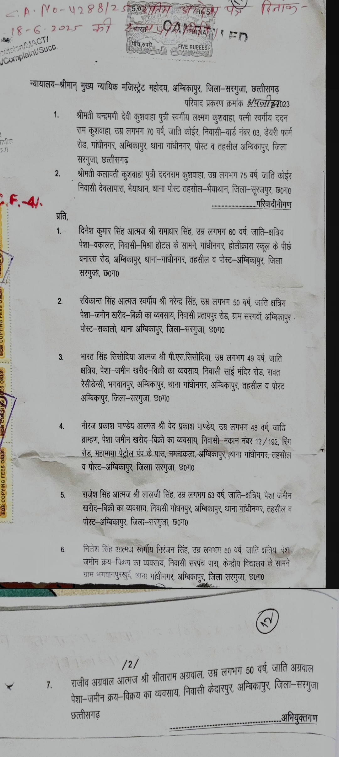 यह मामला अंबिकापुर के एक भूमि सौदे से जुड़ा है, जिसमें 70 और 75 वर्षीय दो वृद्ध अनपढ़ ग्रामीण महिलाएं, चंद्रमणि और कलावती कुशवाह, धोखाधड़ी का शिकार हुईं. आरोप है कि आरोपियों ने उनकी अशिक्षा और भोलेपन का फायदा उठाकर उनकी जमीन के नाम पर 1 करोड़ 34 लाख 84 हजार रुपये का गबन किया, जबकि उन्हें केवल 42 लाख रुपये ही दिए गए.
