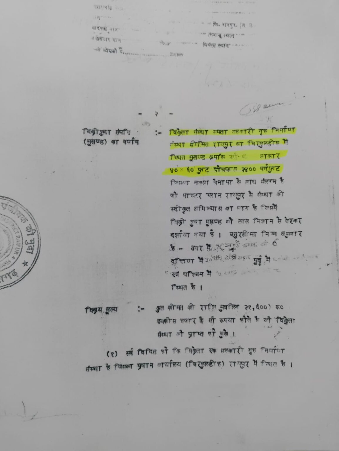 रायपुर। राजधानी के समता सोसायटी स्थित शिकारपुरी में एक बड़ा जमीन घोटाला सामने आया है, जहां सड़क की जमीन पर कब्जा कर अवैध व्यावसायिक परिसर बनाया जा रहा है। इसका खुलासा तब हुआ जब मूल भू स्वामी ने अपनी जमीन का सीमांकन कराया। चौंकाने वाली बात यह है कि 43 साल पहले खरीदी गई जमीन के खसरा नंबर को बदलकर सड़क पर दिखाया गया और इस पूरे खेल में अफसरों की मिलीभगत सामने आई है। बताया जा रहा है कि समता सोसायटी के वकील की राज्य प्रशासनिक सेवा में चयनित बहू ने अपने प्रभाव का इस्तेमाल कर यह सब कराया है। अब भू स्वामी धोखाधड़ी का प्रकरण दर्ज कराने की तैयारी में है।