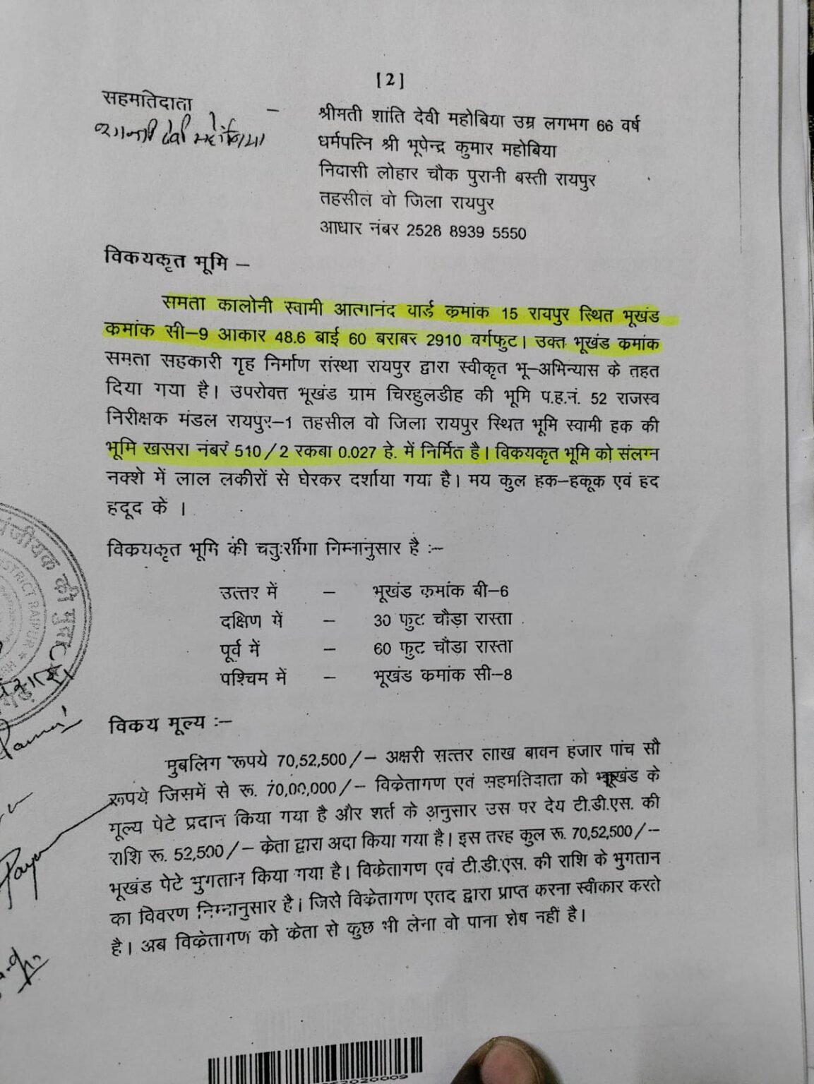 इसके साथ ही, नगर एवं ग्राम निवेश विभाग द्वारा दिए गए पुननिर्धारण आदेश को भी सक्षम न्यायालय में चुनौती देने का मन बना लिया गया है। बताया जा रहा है कि मूल रजिस्ट्री में जमीन का खसरा 510/2 बताया गया है। रजिस्ट्री में मिले एक पेपर पर पंजीयक के हस्ताक्षर हैं, जबकि दूसरे पर हस्ताक्षर और सील नहीं होने से फर्जीवाड़े की आशंका और मजबूत होती है। इस मामले में ईओडब्ल्यू को भी शिकायत की गई है और ईओडब्ल्यू मामले की तहकीकात कर रही है। उम्मीद है कि जल्द ही दोषियों पर कार्रवाई होगी।