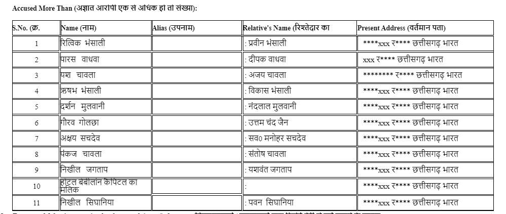 रायपुर : राजधानी की तेलीबांधा पुलिस द्वारा होटल बेबीलॉन कैपिटल में चल रहे जुए के फड़ पर की गई छापामार कार्यवाही दिन भर चर्चा में रही। लोग यह जानने को आतुर थे कि इस हाई प्रोफाइल जुए में किन रसूखदारों को पकड़ा गया है, मगर पुलिस ने मीडिया के समक्ष नाम उजागर नहीं किये, जिसको लेकर पुलिस की किरकिरी भी हुई। साथ ही सूत्रों का यह भी कहना था कि यह जो राशि जप्ती बताया गया है 198,150रूपये से कहीं ज्यादा की राशि मिली है, तों बाकी के रकम कहां गए यह भी सवाल उठ रहा है।आखिरकार पुलिस ने ऑनलाइन दर्ज FIR में सभी आरोपियों के नामों का उल्लेख किया। इसमें कुल 11 आरोपियों के नाम हैं और इनमें बेबीलॉन होटल का मालिक परमजीत सिंह खनूजा का भी शामिल हैं। एक नजर इन आरोपियों की सूची पर :
