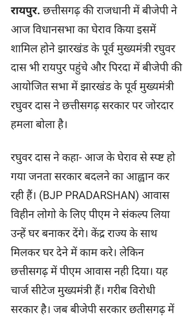- झारखंड के पूर्व मुख्यमंत्री ने सी एम भूपेश को लिया आड़े हाथ कहा ‘चार्जशीटेट मुख्यमंत्री’