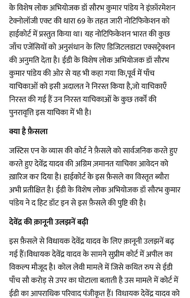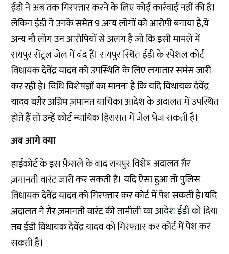 - कोल लेवी स्कैम मामले में आरोपी भिलाई शहर विधायक देवेन्द्र यादव की अग्रिम जमानत याचिका को माननीय उच्च...