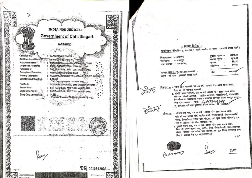 छत्तीसगढ़ में कलेक्टर रानू साहू की भ्रष्टाचार की माया, एक ही दिन में ब्लैकमनी से करोडो की रजिस्ट्री पे रजिस्ट्री, सरकार को भी लगा लाखो का चूना, अफसरों और नेताओं की आकूत दौलत की जाँच को लेकर पशोपेश में ED, देखे दस्तावेज
