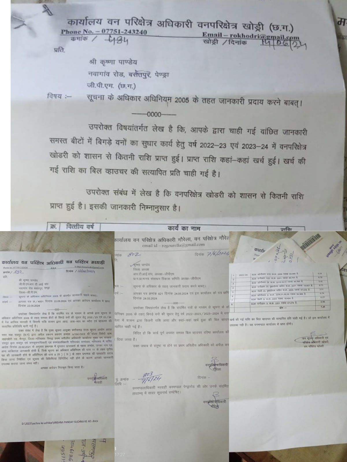 जिसके जवाब मे गौरेला रेंजर नें लिख कर भेजा कि इसकी कागजात DFO कार्यालय मे जमा कर दिया गया है ।