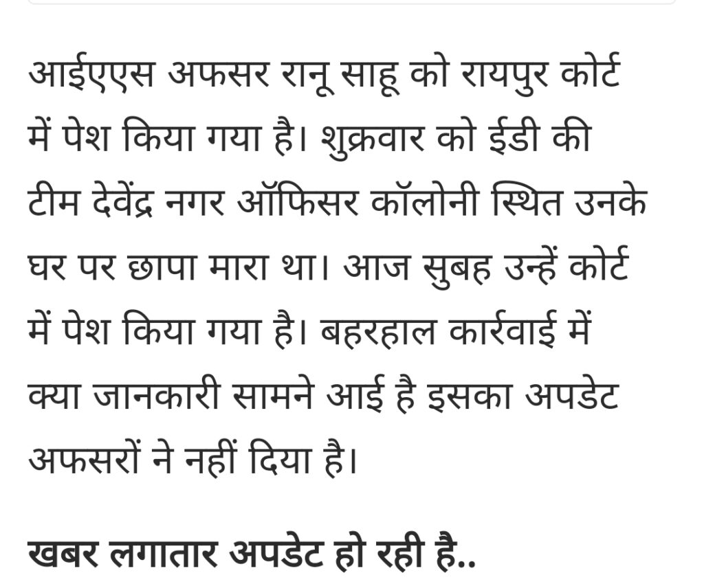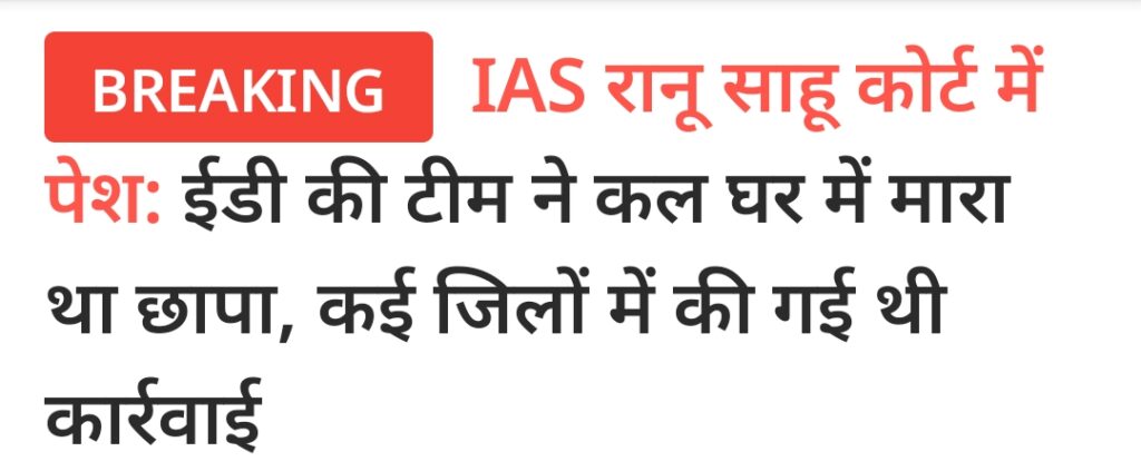 - जगत विजन ब्रेकिंग : IAS रानू साहू को ईडी ने किया विशेष न्यायाधीश राजपूत के न्यायालय में पेश