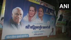 दिल्ली: मल्लिकार्जुन खड़गे द्वारा कांग्रेस के राष्ट्रीय अध्यक्ष का कार्यभार संभालने से पहले AICC कार्यालय के बाहर उनकी तस्वीरें वाली होर्डिंग्स लगाई गई। मल्लिकार्जुन खड़गे आज अपना कार्यभार संभालेंगे।