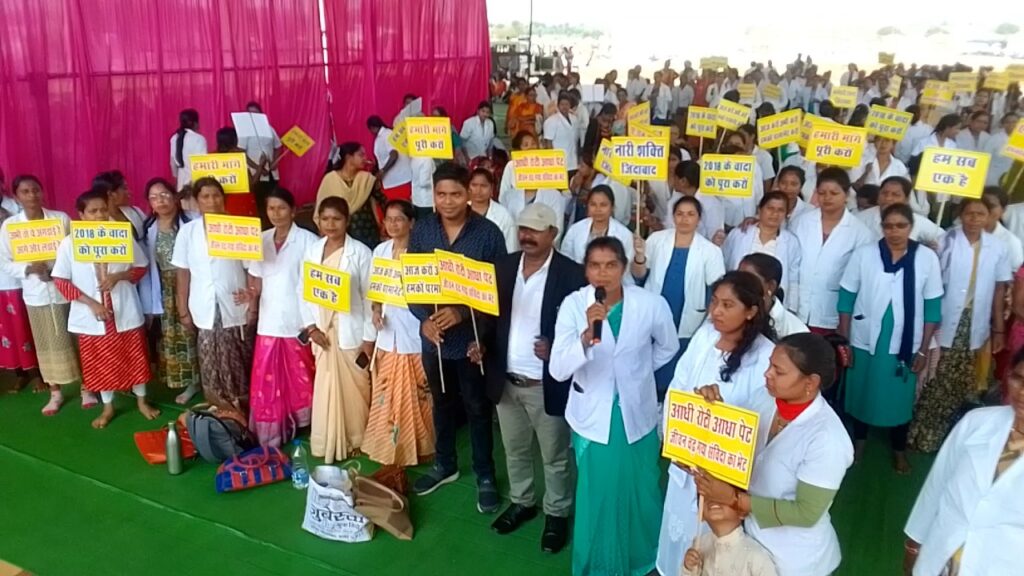 कर्मचारी मुख्यमंत्री भूपेश बघेल की कथनी और करनी का फर्क चीख-चीख कर आसमान को सूना रहे थे, शायद इस उम्मीद पर की आकाशवाणी सीधे मुख्यमंत्री भूपेश बघेल के कानो में सुनाई दे।