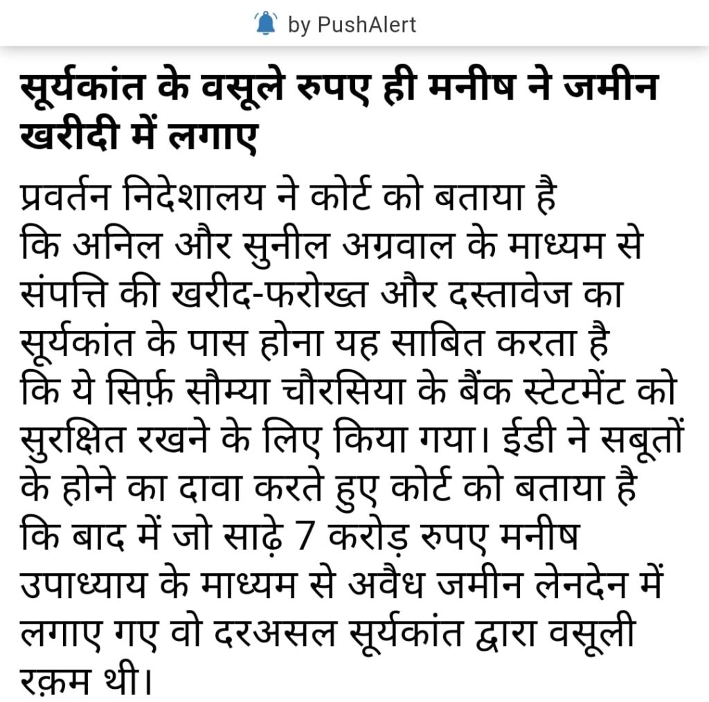 - रिमांड पेशी के दिन ईडी ने विशेष न्यायालय को बताया कि सरकार की सभी गुप्त सूचना सूर्यकांत से whatsapp