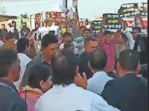 तखतपुर विधानसभा क्षेत्र और शहर से लगे ग्राम पंचायत तुर्काडीह में बुधवार को गुरु घासीदास जयंती समारोह का आयोजन किया गया। दोपहर में इस आयोजन में PHE मंत्री व समाज के गुरु रुद्र कुमार शामिल हुए। जयंती समारोह के बाद जब मंत्री मंच से उतरकर अपनी कार की ओर जाने लगे तब समाज के युवकों ने काला झंडा दिखाते हुए उनके खिलाफ जमकर नारेबाजी शुरू कर दी। युवक हाथ में तख्तियां लेकर हंगामा मचाने लगे। अचानक युवकों के विरोध को देखते हुए पुलिसकर्मियों ने उन्हें रोकने की कोशिश की। लेकिन, वहां पुलिसकर्मियों की संख्या कम थी। ऐसे में युवक काला झंडा लेकर उनके पास पहुंच गए थे।