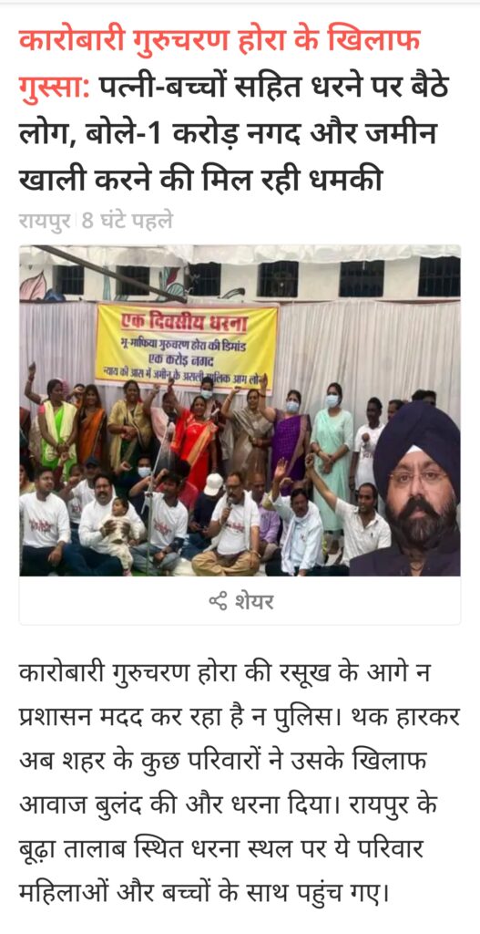 - केवल कारोबारी गुरूचरण के खिलाफ फुटा गुस्सा: पत्नी बच्चों सहित धरने पर बैठे लोग……बोले एक करोड़ नगद और...