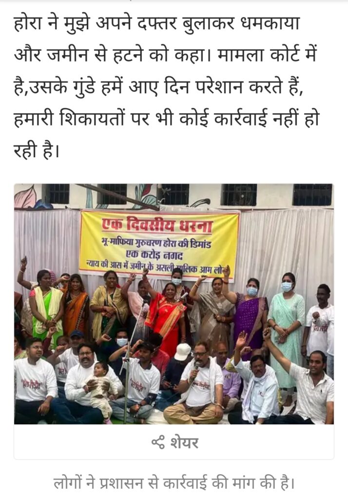 केवल कारोबारी गुरूचरण के खिलाफ फुटा गुस्सा: पत्नी बच्चों सहित धरने पर बैठे लोग……बोले एक करोड़ नगद और जमीन खाली करने की मिल रही है धमकी