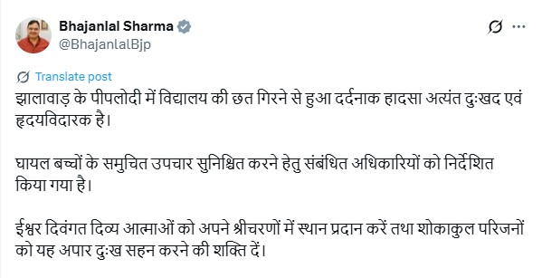 राजस्थान के झालावाड़ जिले के पीपलोदी गांव में शुक्रवार सुबह एक सरकारी स्कूल की छत गिरने से चार बच्चों की मौत हो गई और 17 अन्य घायल हो गए।
