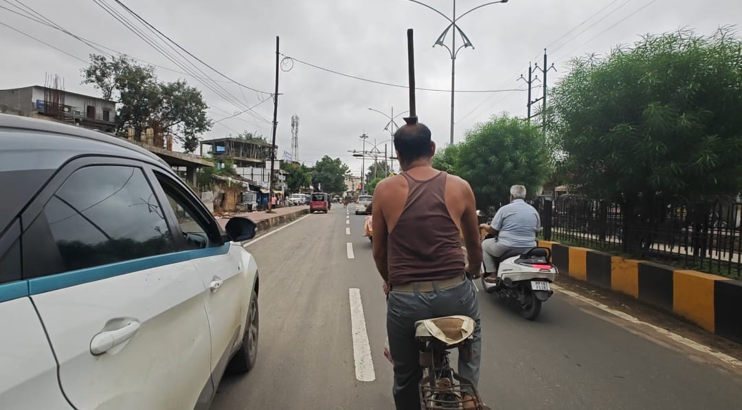 वायरल हो रहे शख्स का नाम राम नापित है. जो शहडोल जिले के पंचगांव के रहने वाले हैं. राम नापित बीते 15 सालों से इस अनोखे अंदाज में साइकिल चला रहे हैं. पहले सिर पर लौकी, सब्जी, मटका रखकर संतुलन बनाते थे, लेकिन अब वह कुल्हाड़ी, बसूला, लकड़ी की बल्ली, पाइप और भारी सामान को सिर पर रखकर शहर में घूमते हैं.