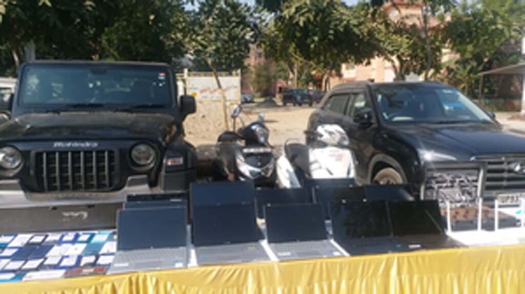 पुलिस को इनके कब्जे से 12 लैपटॉप, 73 स्मार्ट फोन, 6 पासबुक, 19 चैक बुक, 90 एटीएम कार्ड, 58 सिम कार्ड, 1 बुकी ब्रीफकेस सूटकेस, 2 नेटवर्क राउटर, 6 पासपोर्ट, 17 सिक्के यूएई करेन्सी, 60 परिचय पत्र आधार कार्ड/पेनकार्ड, 2 लग्जरी गाड़ियां व 2 स्कूटी बरामद की थी।