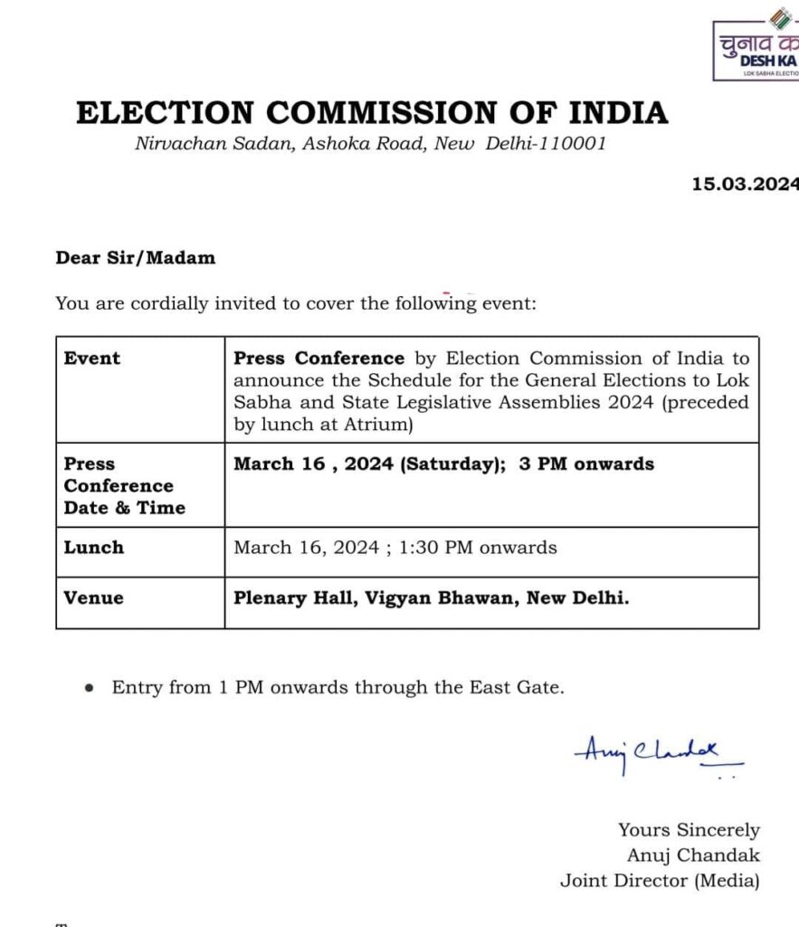 नई दिल्ली : चुनाव आयोग कल दोपहर 3 बजे आम चुनाव के लिए मतदान की तारीखों की घोषणा करेगा। इस घोषणा को ईसीआई के सोशल मीडिया प्लेटफॉर्म पर लाइव स्ट्रीम भी किया जाएगा।