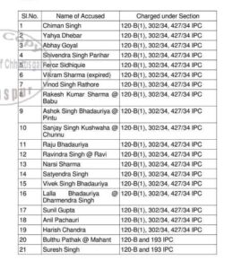 - जग्गी हत्याकांड : तत्कालीन सीएसपी ए. एस. गिल, टीआई वी.के.पाण्डेय, उपनिरीक्षक आर. सी. त्रिवेदी, ढेबर,...