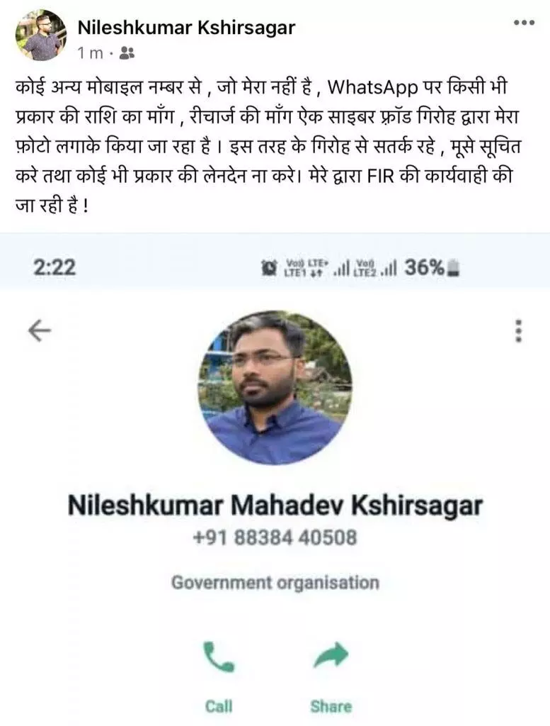 - कलेक्टर के नाम पर पैसे मांग रहे थे ठग , कलेक्टर ने थाने में कराया अपराध दर्ज कहा कार्यवाही करने को