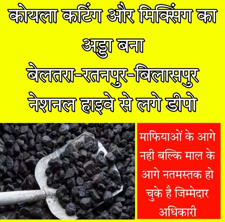 बताते चले कि बिलासपुर जिला में जमकर कोयला कटिंग (चोरी) का अपराध अवैध रूप से फलफूल रहा है साथ ही साथ कोयला चोर माफ़िया कोयला में वजन बढ़ाने के लिए काला पत्थर एवं जीरा गिट्टी मिला रहे है. छत्तीसगढ़ के उधोगपतियों को कोल माफ़िया भरपूर चुना लगा रहे है उधोगों में कार्यरत कर्मचारी भी इस अपराध में शामिल है जो कर्मचारी जानकर भी मिक्सिंग कोयला को प्लांट के बॉयलर भट्ठी में उपयोग कर रहे है बताया जाता है माफ़िया मिक्सिंग कोयला को खपाने के लिए प्लांट के कर्मचारियों को रिश्वत देते है इसी कारण प्लांट प्रबंधन भी चुपचाप कोल माफियाओं के चोरी के कोयला को प्लांट में उपयोग कर रहे है. प्रतिदिन बिलासपुर जिला में ही माफ़िया 10 करोड़ रुपये कीमत के लगभग की कोयला चोरी के अपराध को अंजाम दे रहे है. इसके बाद भी प्रशासन कार्यवाही करने में लाचार है यह बताना उचित होगा की असल मे इन माफियाओं की सेटिंग कई विभाग के बड़े अधिकारियों से है इसी के चलते दीगर राज्यों से आए चोर छत्तीसगढ़ में आकर कोल माफ़िया बन चुके है।
