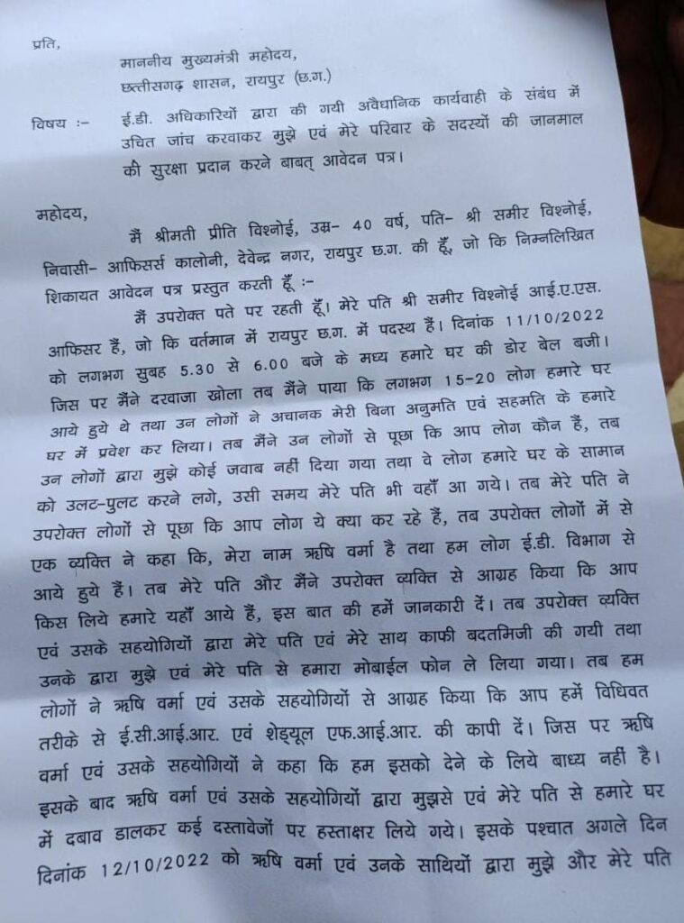 इसके अलावा छत्तीसगढ़ में आईएएस और आईपीएस की उपेक्षित लॉबी ने भी खबरे ऊपर पहुचाई है। पति पत्नी और वो फिल्म बन गयी है।संभवतः दीवाली के बाद दिवाला निकलने की संभावना है। अंतिम प्रश्न यही कि एक राज्य सेवा की अधिकारी के कर्म ऐसे कैसे है कि दो दो केंद्रीय एजेंसी की प्रिय बनी हुई है। सरकारी महकमे में सिनियरटी और जूनियरटी का बड़ा अंतर होता है। अंदर तक चुभती है जूनियर की बाते। कुछ बाते ऐसी बाते है जो लोगो ने फैलाई है।